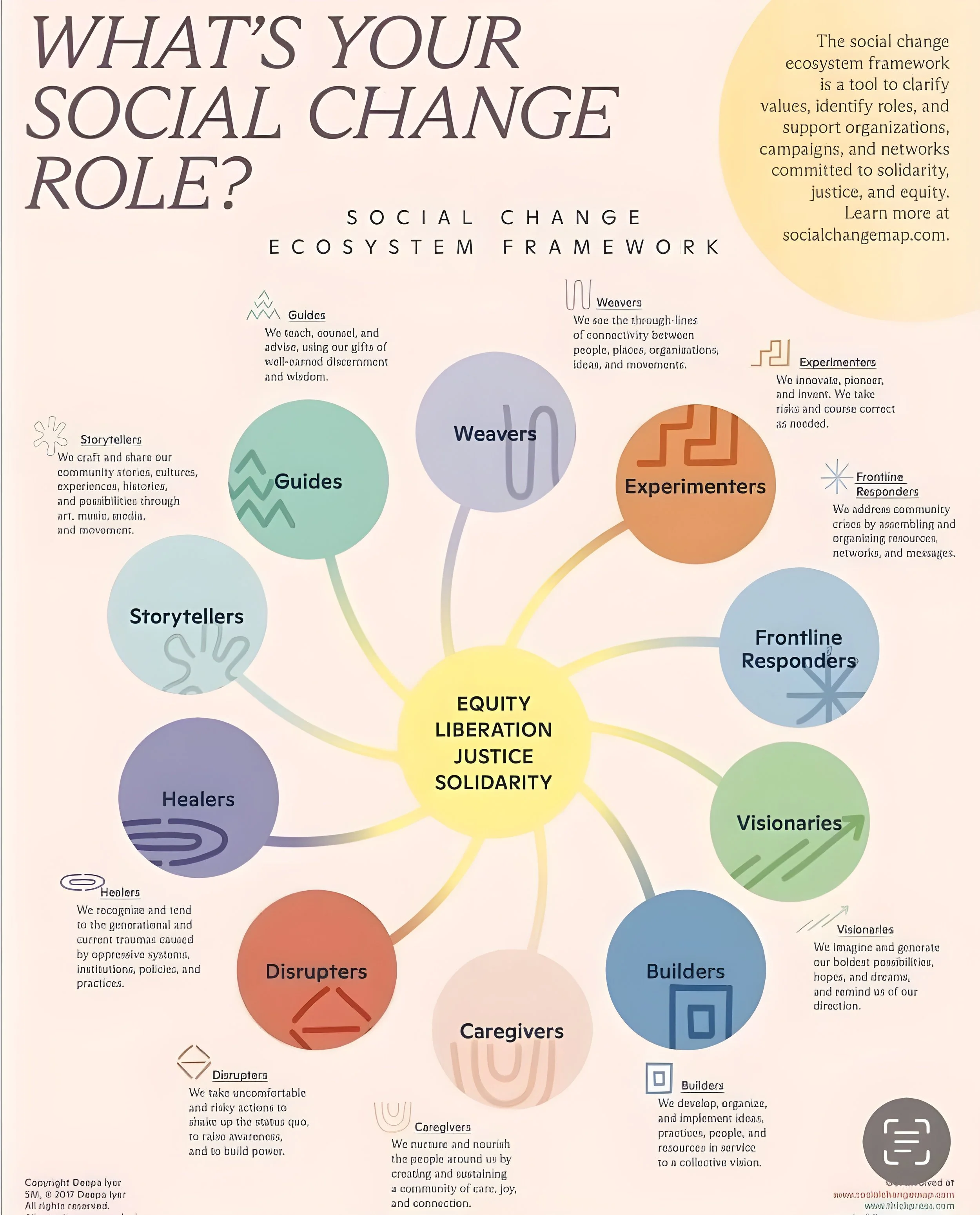 In our Social Change Now forums—our next is on Sunday, October 12th, 2025 at 9:45 a.m.—we’re exploring how everyone can play a part in social change. Check out this infographic that explains how we can be the change we wish to see the in the world.