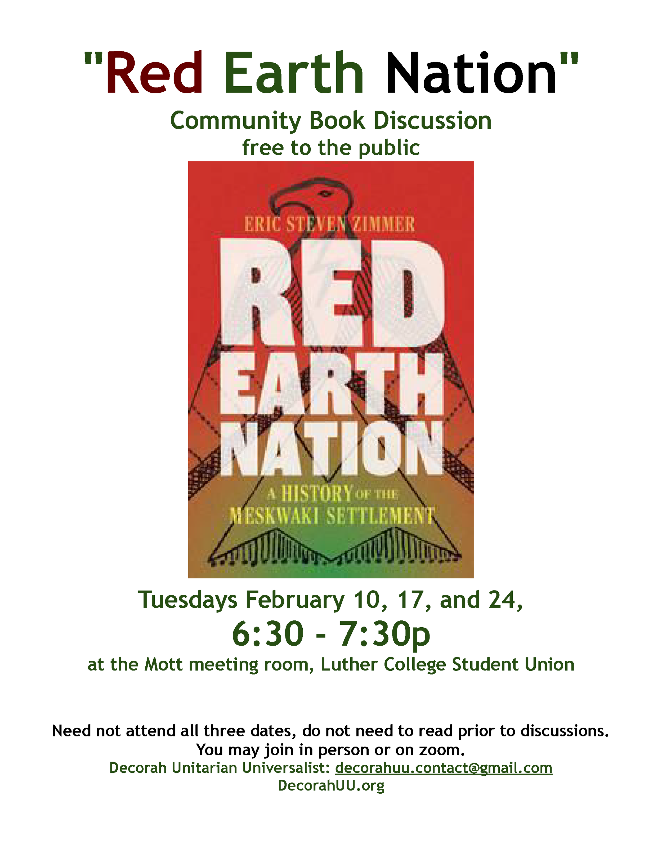 Forum: Red Earth Nation Jan 29 Written By Peoples Church Unitarian Universalist The Social Justice Team invites you attend this virtual forum hosted by the Decorah UU. Peoples Church Unitarian Universalist